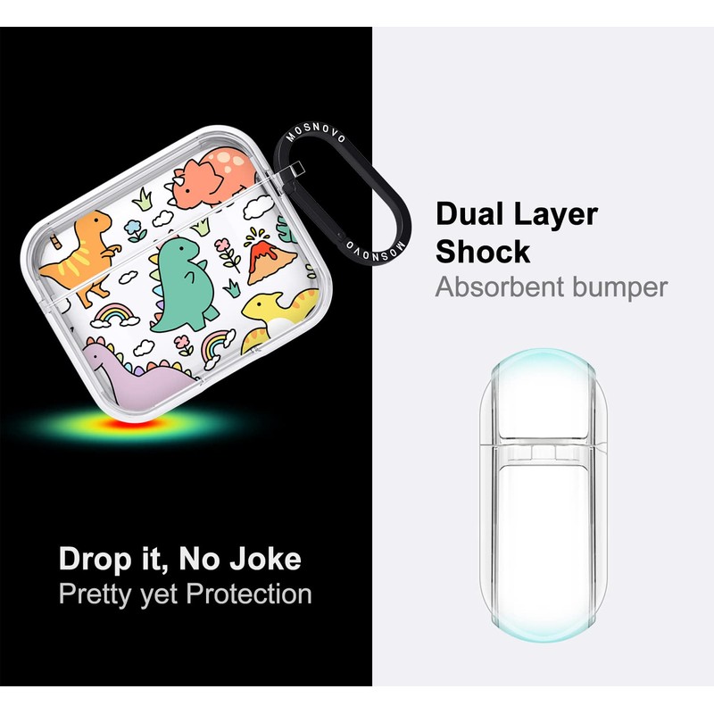 MOSNOVO Case for Airpods 3rd, Protective Clear Case with Shockproof Dual Layer Hard Luxe Metal Ring Designed for AirPods 3rd Generation - Dinosaur Land