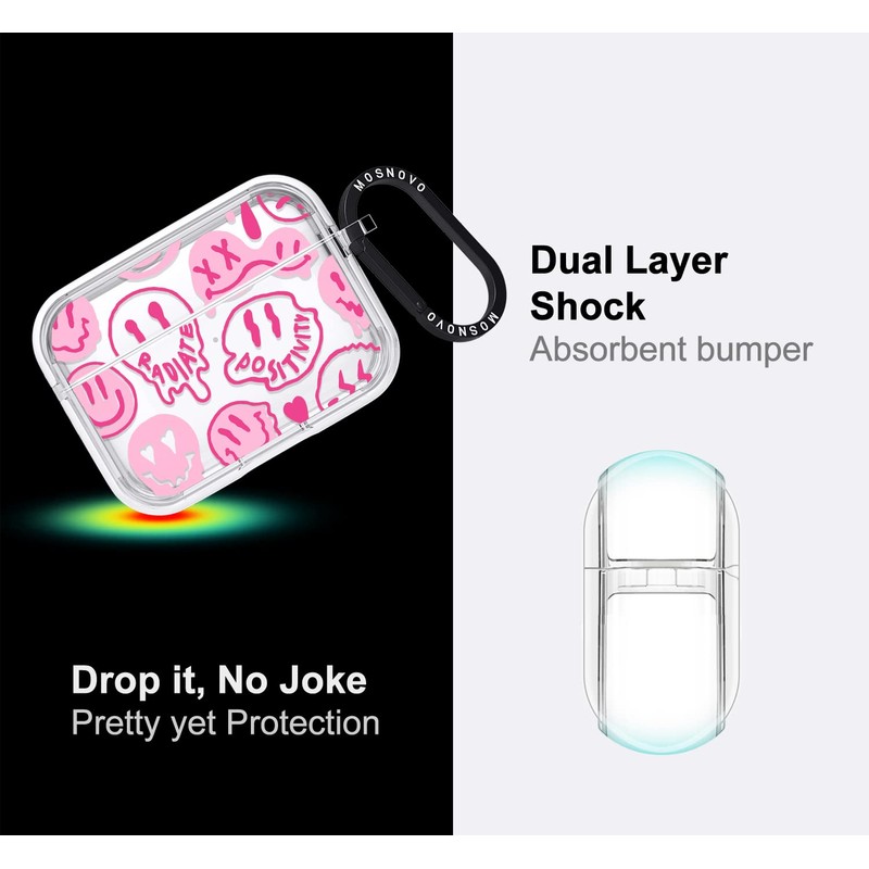 MOSNOVO Case for Airpods Pro & Airpods Pro 2, Protective Clear Case with Shockproof Dual Layer Hard Luxe Metal Ring Designed for Airpods Pro 2 Generation - Pink Dripping Smiles Positivity Radiate Face