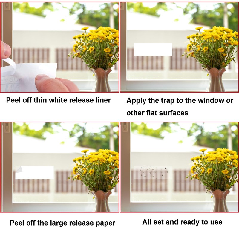 - EFFECTIVE AND CONVENIENT FLY CONTROL: Our fly traps for clear windows are a reliable solution for flying insect problems. These waterproof, easy-to-apply, and disposable traps are non-toxic, ensuring the safety of your environment. Simply peel off the thin white lining, apply the fly trap for indoors to your window, and let it do the work. Rigorously tested under harsh field conditions, these traps offer maximum reliability for pest control experts.