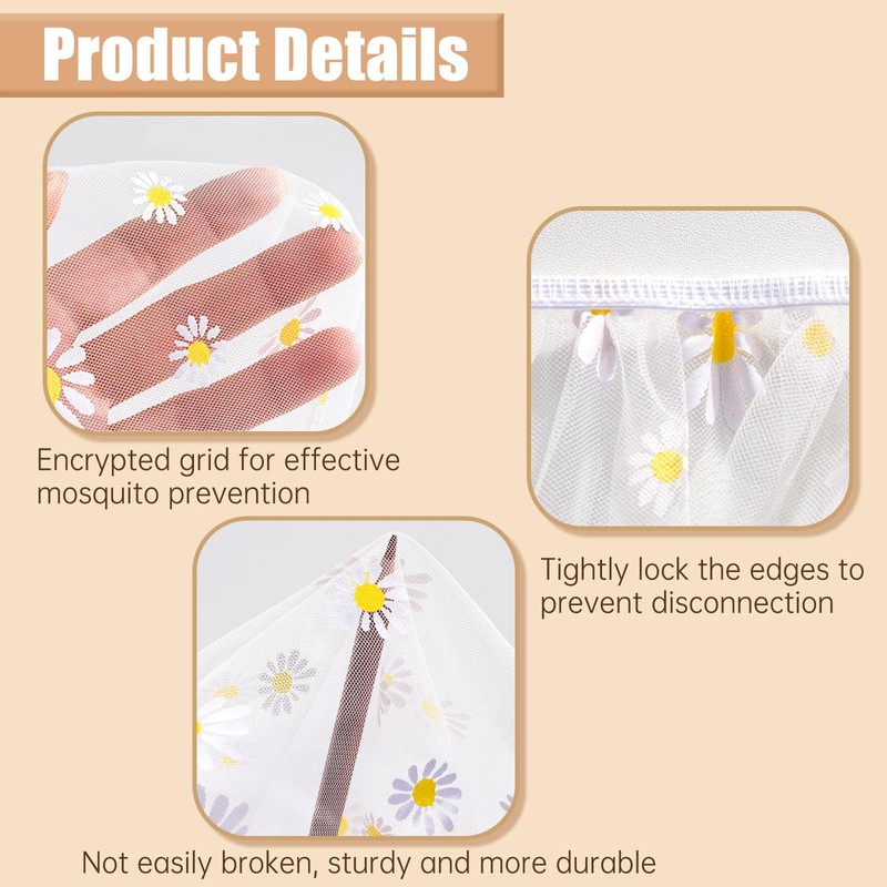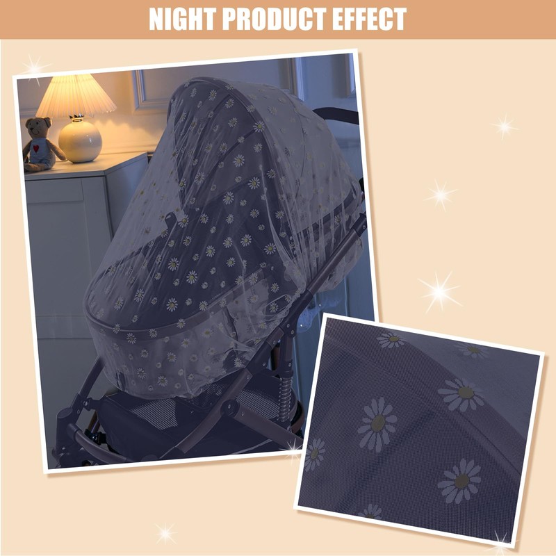 BQSAZHYJ Mosquito Net for Baby Pram, Daisy Print Stroller Netting Cover - Perfect Bug Net for Strollers, Bassinets, Mini Crib, Cradles and Playards (White Daisy)