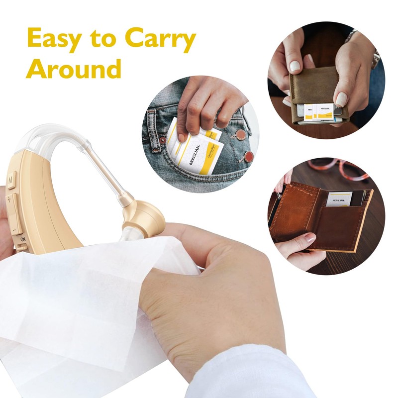 - Hearing Aid Cleaning Wipes --- Used to clean hearing aids, earplugs, glasses, and mobile phone screens(They have screen protectors).
