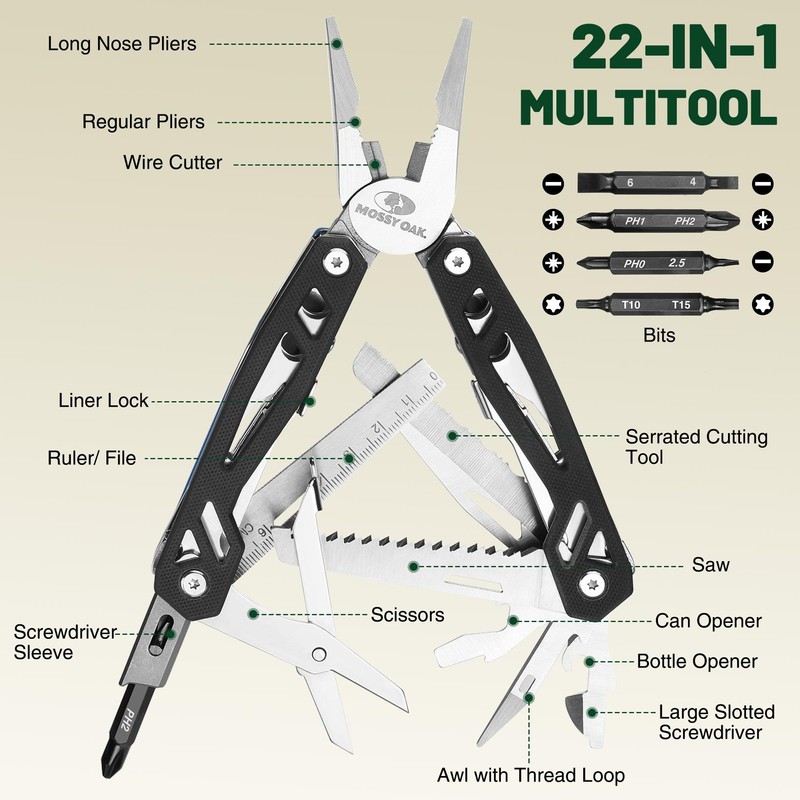 - Versatile Usage:The Mossy Oak multifunctional pliers are perfect for a variety of indoor tasks, including home decoration, furniture assembly, and opening cans or screws. Additionally, they are ideal for outdoor activities such as camping, fishing, hiking, hunting, and traveling.