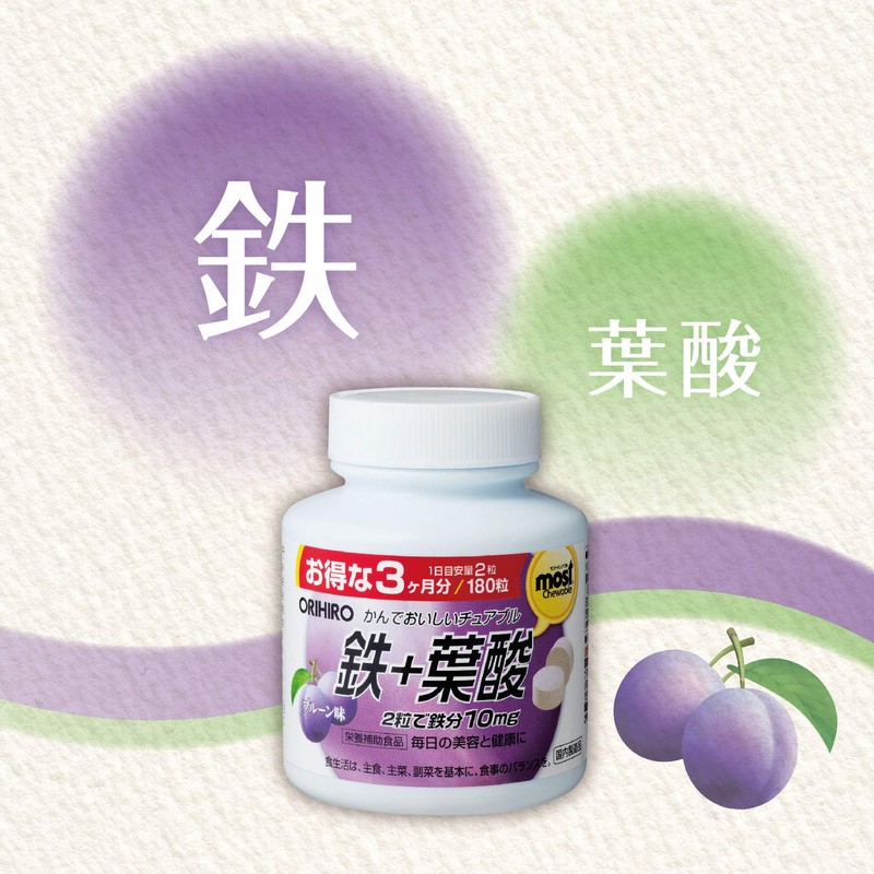 オリヒロ MOSTチュアブル 鉄+葉酸 180粒 90日分 鉄分 葉酸 ビタミンB12 ビタミンB6 ビタミンC プルーン味