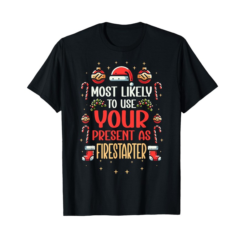Most Likely To Use Your Present As Firestarter - Funny Xmas T-Shirt