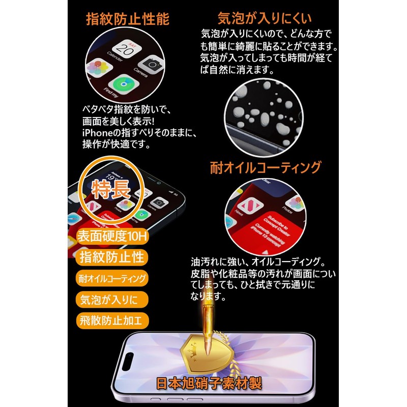 - 【快適なタッチ感!指紋防止·撥水撥油技術】真空蒸着技術を利用し、表面にナノコーティングを採用し、指紋防止薄膜を形成することで、滑らかであると同時にパワフルな耐油汚れ・汗染み・指紋性能を備え、汚れ防止効果はより長く持続でき、頻繁にスマホを拭く悩みがなくなります。
