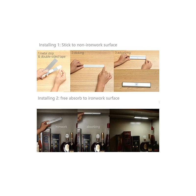 - Mit Magnet & Metallschiene: Der eingebaute Magnet l?sst die LED-Lichtleiste an Khlschrank oder andere Gegenst?nde, die auf einen Magnet reagieren einfach befestigen. Bei Oberfl?chen, die nicht metallisch sind, kann die Metallleiste mit einem doppelseitigen Klebeband angebracht werden (Leiste & Klebeband im Lieferumfang enthalten). Magnetische Befestigung ideal fr Schr?nke, Schubladen, Spiegel und weitere M?bel.