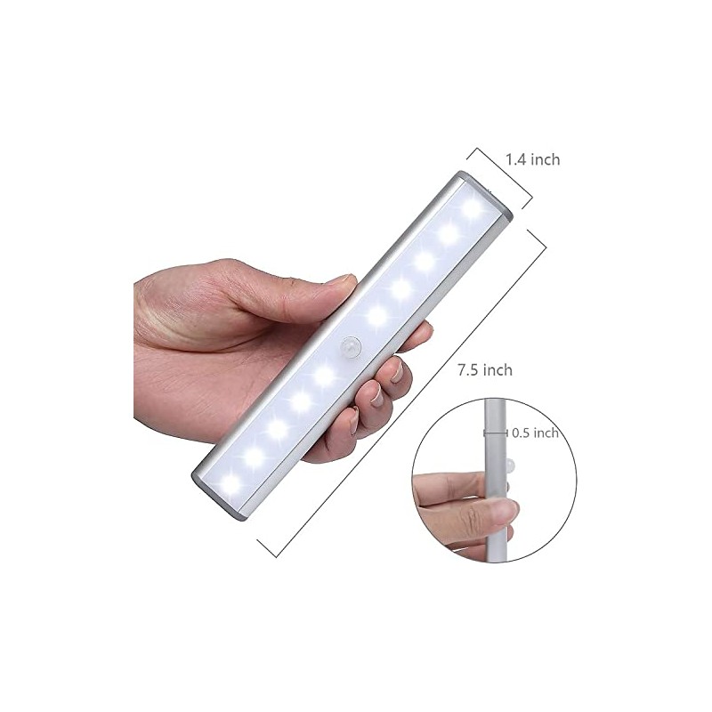 MOSTON Moston 2er Set 10 LED USB Wiederaufladbar Magnetisch Bewegungsmelder Nachtlicht,auto EIN/AUS Schrankbeleuchtung,tragbar schnurlos kleben Irgendwo fr Schr?nke Kleiderschrank(Silber Schranklicht)