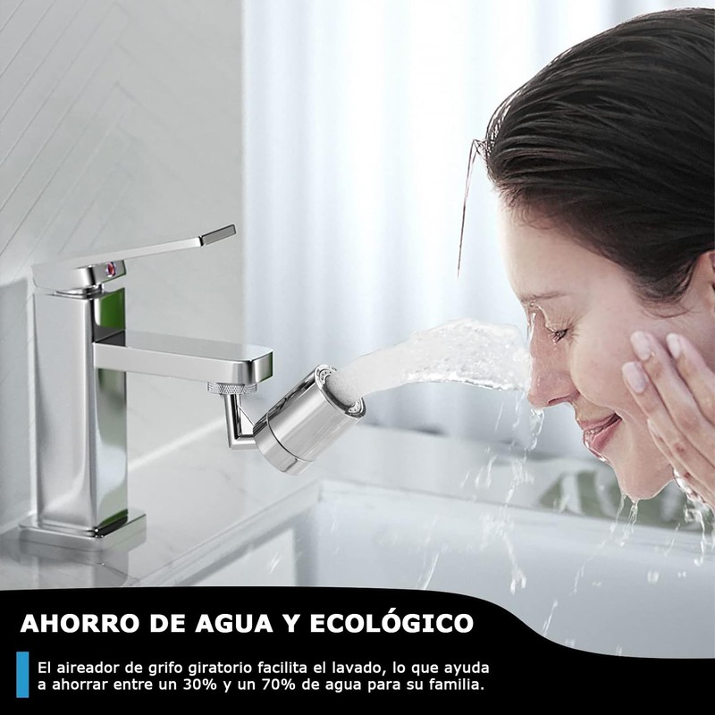 - 【720 Ángulos Grandes y 2 Modos de Agua】Corriente de burbujas suave y ducha con rociador fuerte. Este aireador de grifo de gran ángulo 720 tiene una excelente presión de agua y flexibilidad para dirigir el agua a donde desee.