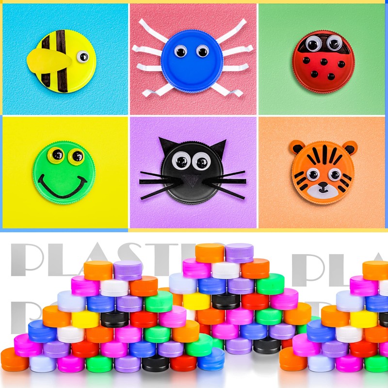Motbach 200Pcs Plastic Bottle Caps for DIY Craft Environmental Protection and Development of Children’s Intelligence (Mixed Color)