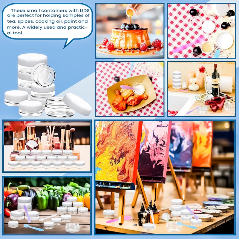 - Practical Container: These small containers with lids are ideal for holding samples of loose leaf teas, spices, cooking oils, paints,nail accessories, charms, beads,earrings,sequin,small jewelry and any small accessories you want. A wide-used and practical tool for your daily life