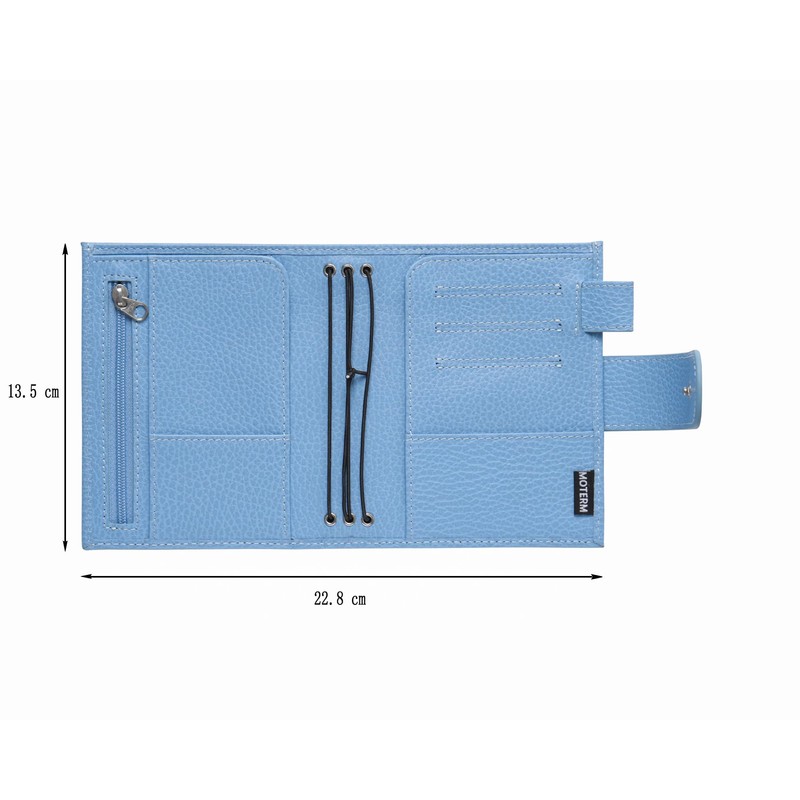 Moterm Companion Traveler's Notebook Cover - Upgraded Design with Back Pocket (Passport Size, Firm Pebbled-Sky Blue)