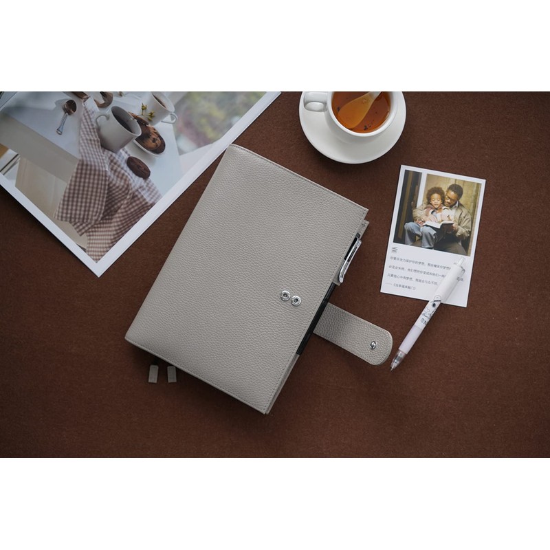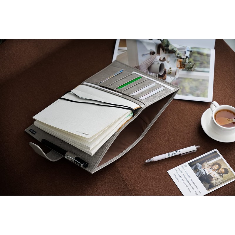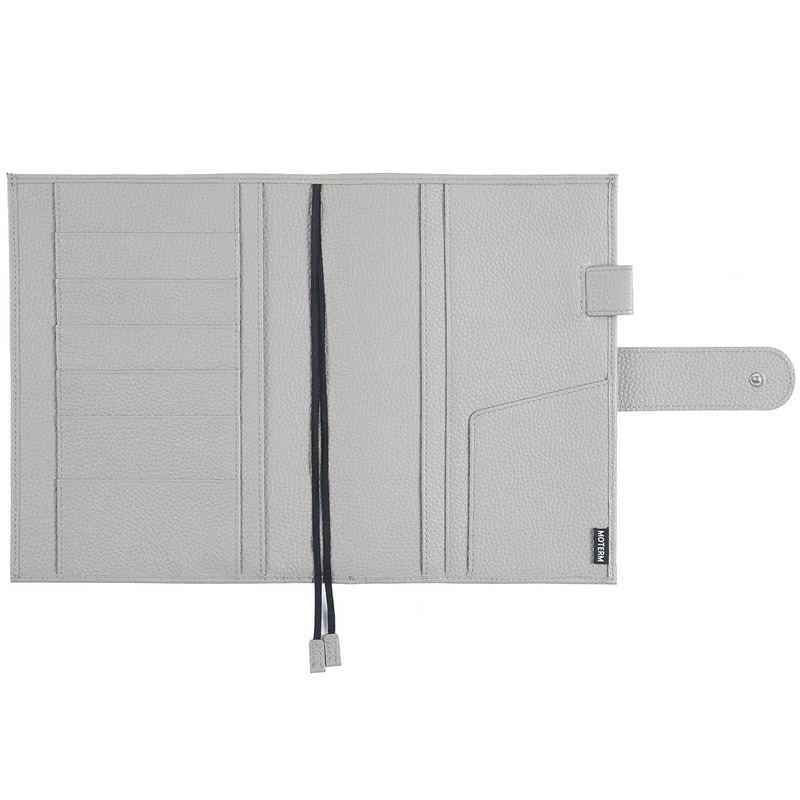 Moterm Leather Cover for A5 Notebook - Fits Hobonichi Cousin, Stalogy and Midori MD Planner, with Pen Loop, Card Slots and Back Pocket (Pebble Grey)