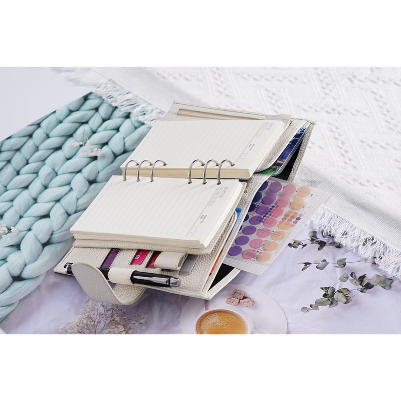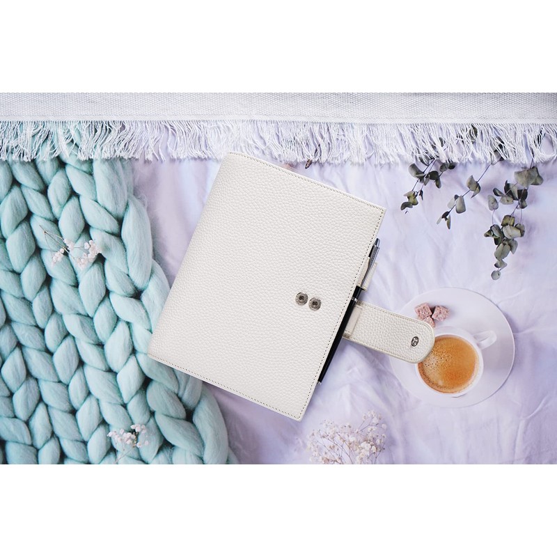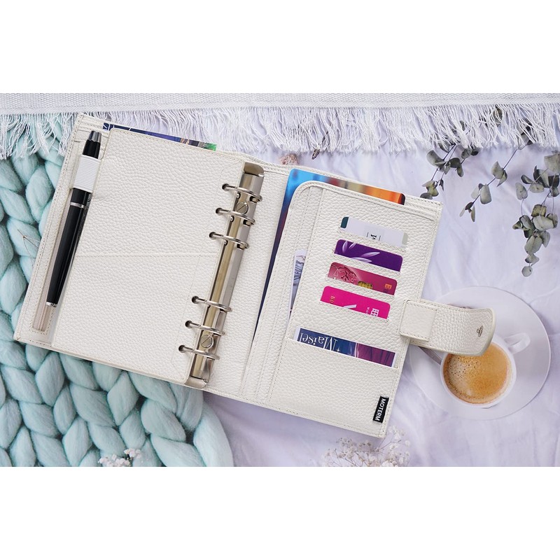 Moterm Personal Luxe Rings Planner - Genuine Leather Binder Organizer (30mm Ring, Pebbled-Cream)