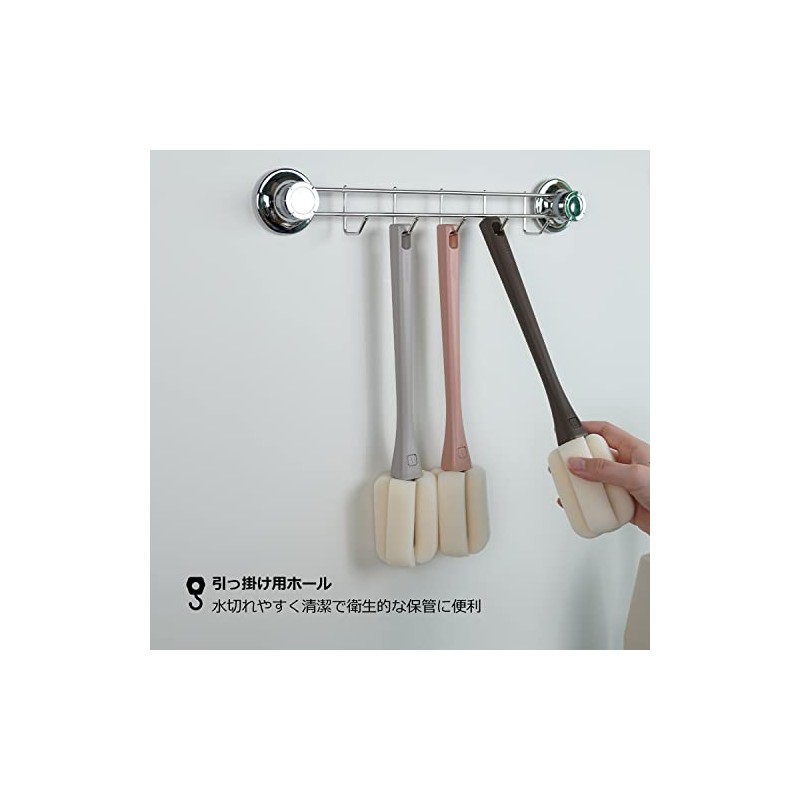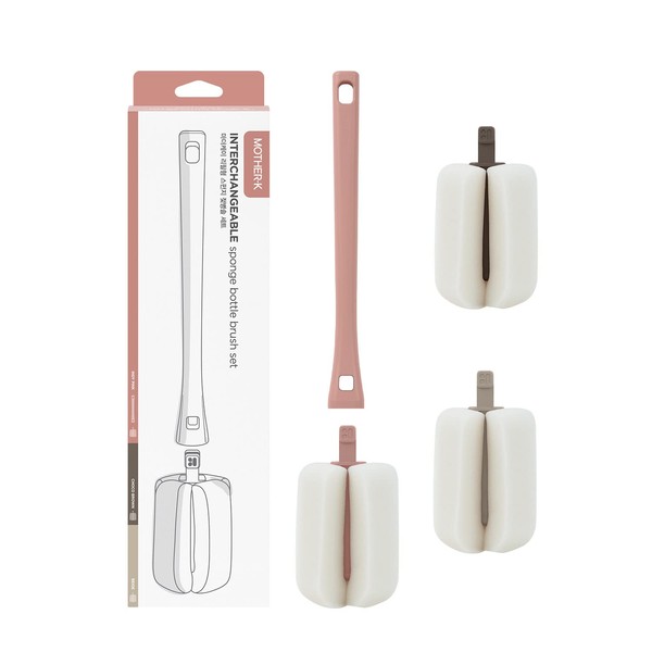 MOTHER-K Sponge Cleaning Brush with Replacement Head, For Baby Bottles & Bottles, Sponge Brush, Abundant Foaming, 1 Main Body + 3 Heads (Indie Pink)