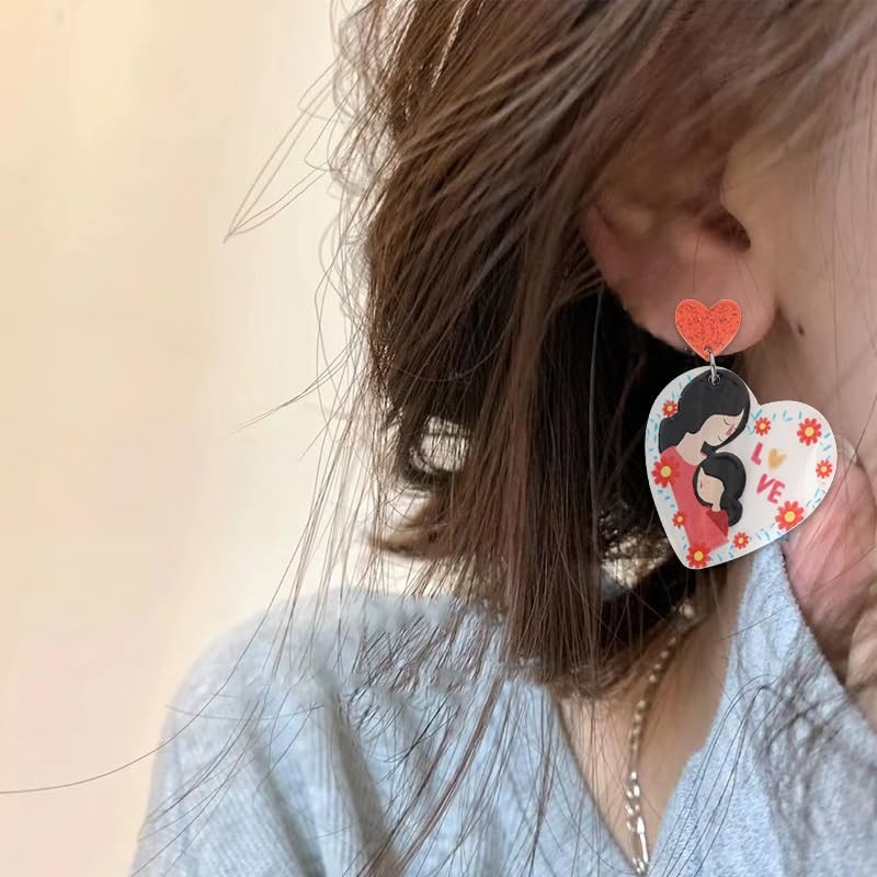 - Funny Design of Mom Heart Earrings Dangling Women: The pattern of this drop dangle earring is a mother and daughter embracing each other, conveying to my mother that I have always been your little girl, the mama earrings for women mom make your mom charming at any time, best mothers day accessory for mom in law, mom birthday Christmas gift ideas, cute mother's day gift for mom mother, accompany her every moment through and thank you to your dear mother for everything she has done for you