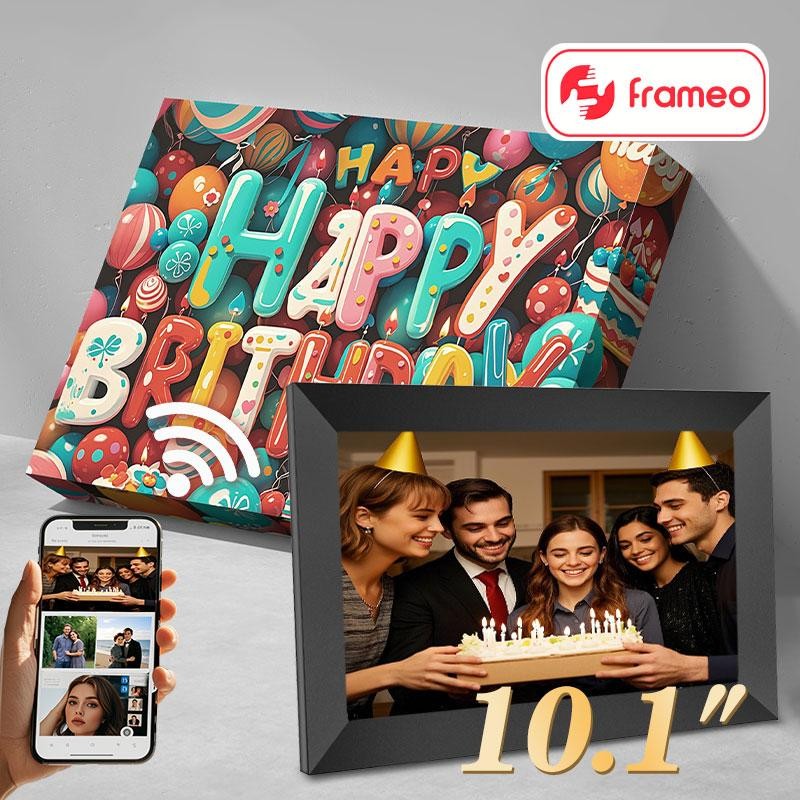Mother's Day Gift,Ekoio Digital Picture Frame 10.1 Inch WiFi,gift idea, IPS Touch Screen Smart Cloud Photo Frame with 32GB Storage, Auto-Rotate Easy Setup to Share Photos or Videos, White Wall Mountable,gift for mom:_10.1 Black-Happy Birthday gift box
