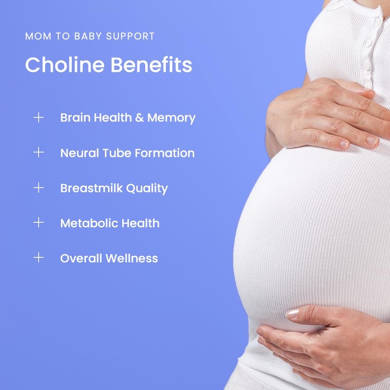 - Supports Baby's Cognitive Function - Choline supplements support neural tube formation when taken during pregnancy, as well as increase choline content in breastmilk. It also enhances the body's use of Omega-3 DHA, supporting overall brain health.