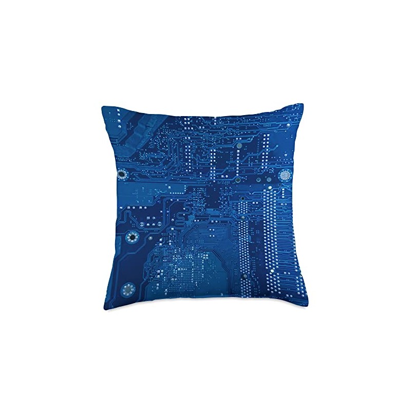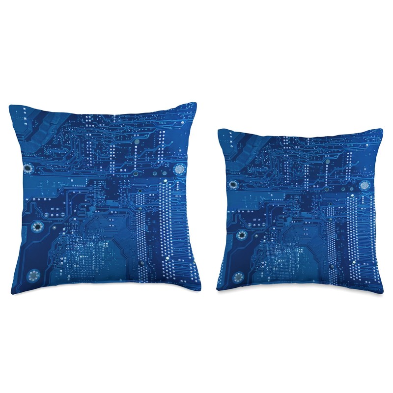 Motherboard Microchip Circuit Blue IT Computer Background Throw Pillow