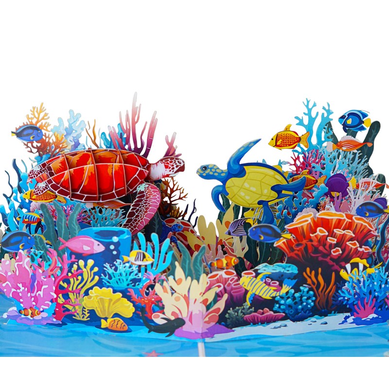 - HANDMADE INTRICATE DESIGN: When the card opens, a stunning 3D underwater world springs to life, filled with brightly colored sea animals gliding gracefully between intricate coral reefs. The vibrant scene captures the beauty of the ocean, with fish, turtles, and other marine creatures swimming in harmony