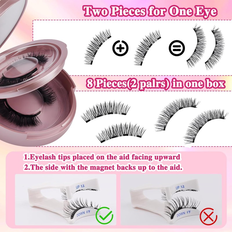 MOTIBACK Doppellagige magnetische Wimpern-Pink Set 24P+24P