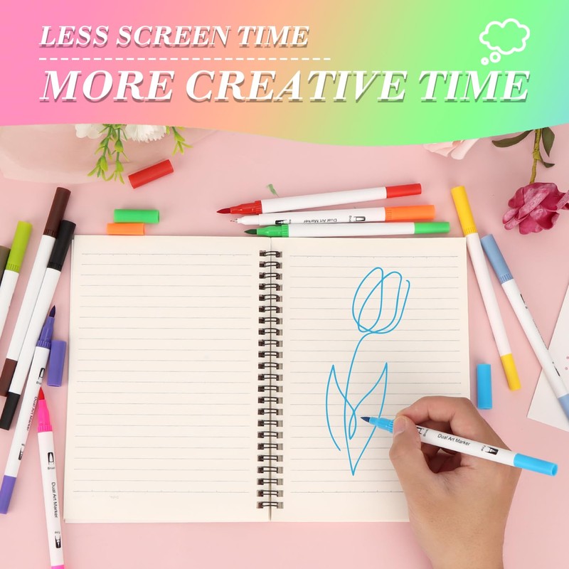 - Dual-Tip Precision & Flexibility : Each MOTIBACK marker features fine liner for intricate detailing and a soft nylon brush tip for smooth watercolor blending, perfect for calligraphy, sketching, and colouring books.