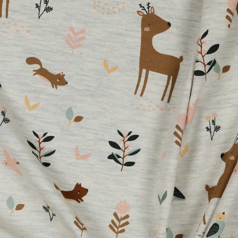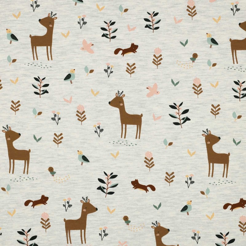 Motif Jersey Mottled Children's Motifs from 0.5 m Cotton Fabric Sold by the Metre Oeko-Tex Certified, Motif: Forest Animals | Cream