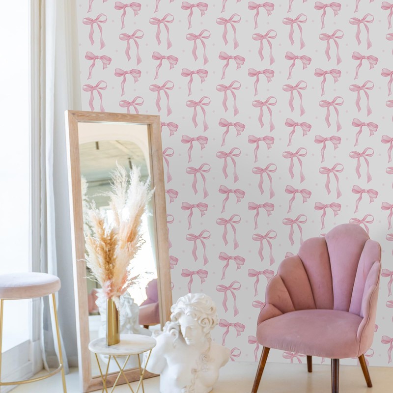 - Effortless Installation: upgrade your interior without the hassle; Our pink bow wallpaper features a convenient peel and stick application that allows you to easily mount it on any flat, dry surface, no water, paste or complicated tools required