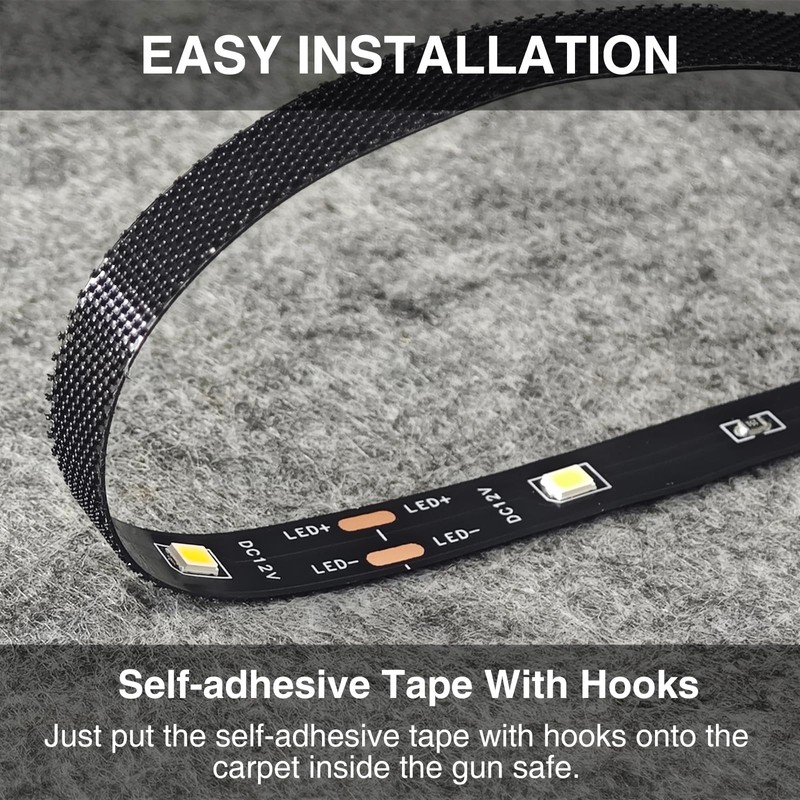 Motion Sensor Gun Safe Light, Motion Activated LED Light Strip with Self-Adhesive Tape with Hooks for Gun Safe, Locker, Closet with Carpet Interior