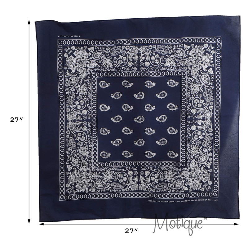 Motique Accessories Extra Large Paisley Bandana 27x27 Inch - Navy