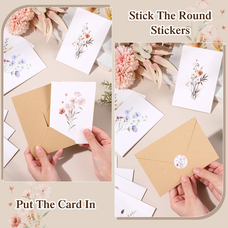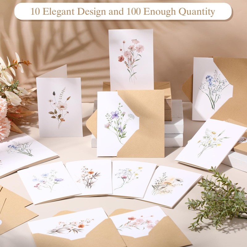 • Comprehensive Package Offering: this valuable package includes 100 floral blank cards, 100 kraft envelopes, and 100 sealing stickers, suit any occasion, perfect for sending heartfelt messages