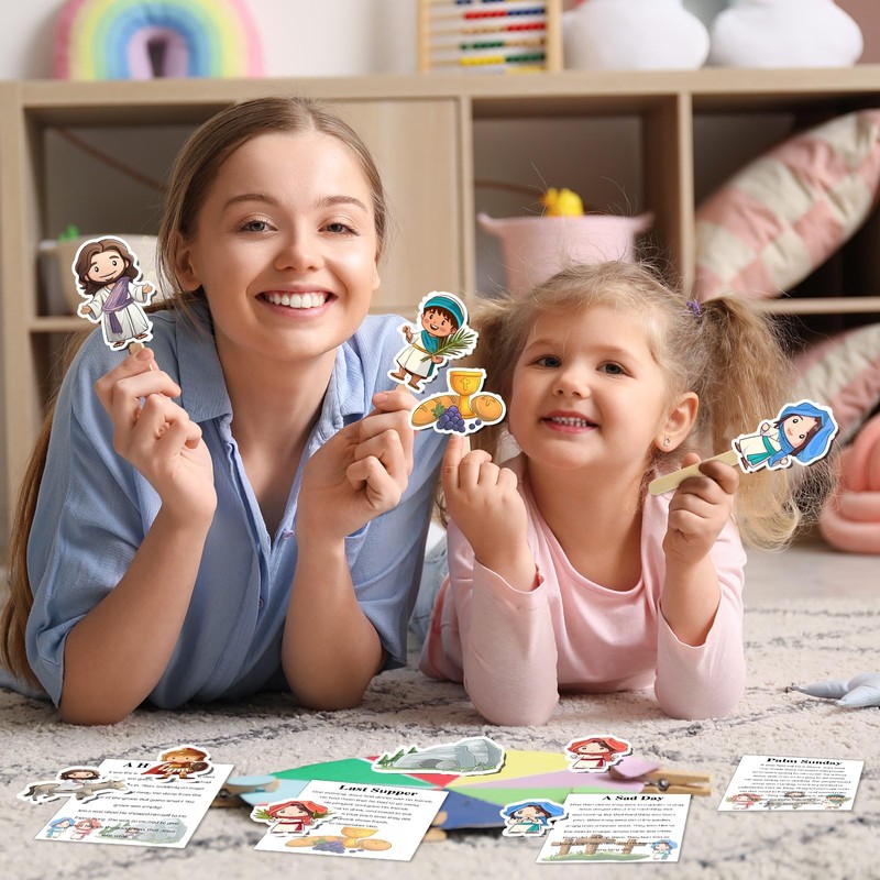 - Quantity for Group Activities: the pack includes 12 Easter sticks and 16 Easter story cards; This Easter cards allow a considerable number of you to join in educational group activities, fostering teamwork skills while learning religious teachings