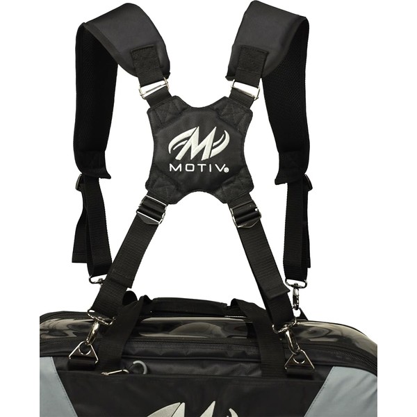- Luxuriously padded double shoulder strap has a secure 4-point connection to the metal shoe bag clips on tournament tote bags like the MOTIV Ballistix totes.