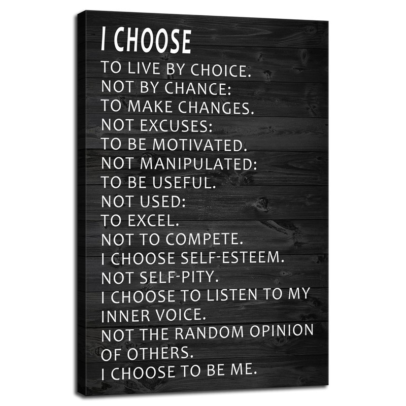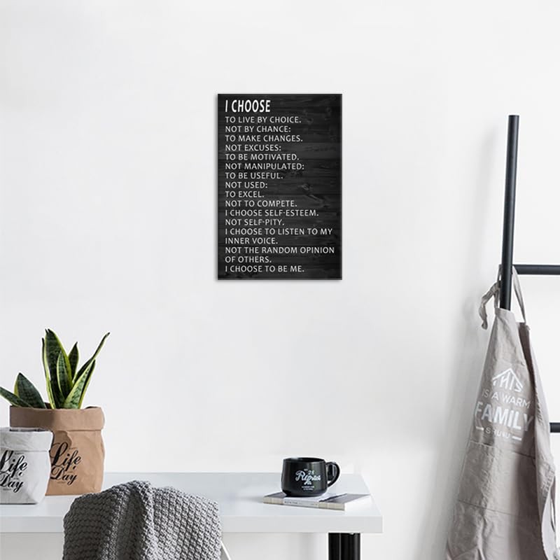 Motivational Canvas Wall Art Inspirational Picture I Choose to Live by Choice Poster Quotes Success Canvas Artwork Print Framed for Home Office Living Room Bedroom Wall Decor[12''W X 18''H]