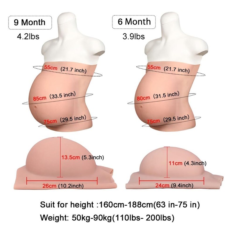 - ❤Use extensively for stage and screen performance, cosplay, props of film, TV series, spoof and advertising, in many cases like maternity wear, medical training, surrogacy, actor props and etc. Great for experience the feeling of pregnancy.