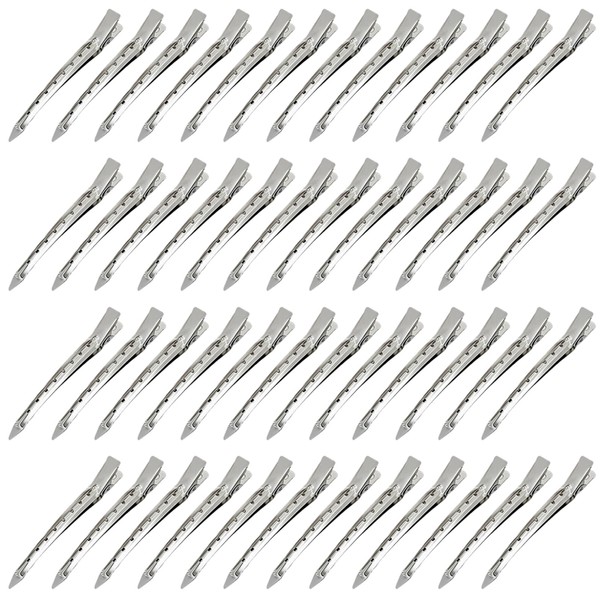 Motmucot 48PCS Duck Bill Hair Clips, 3.5 inch Duck Billed Hair Clips for Styling Sectioning, Metal Alligator Curl Clip Sectioning Clip with Holes for Roller, Salon, Bows DIY, Silver