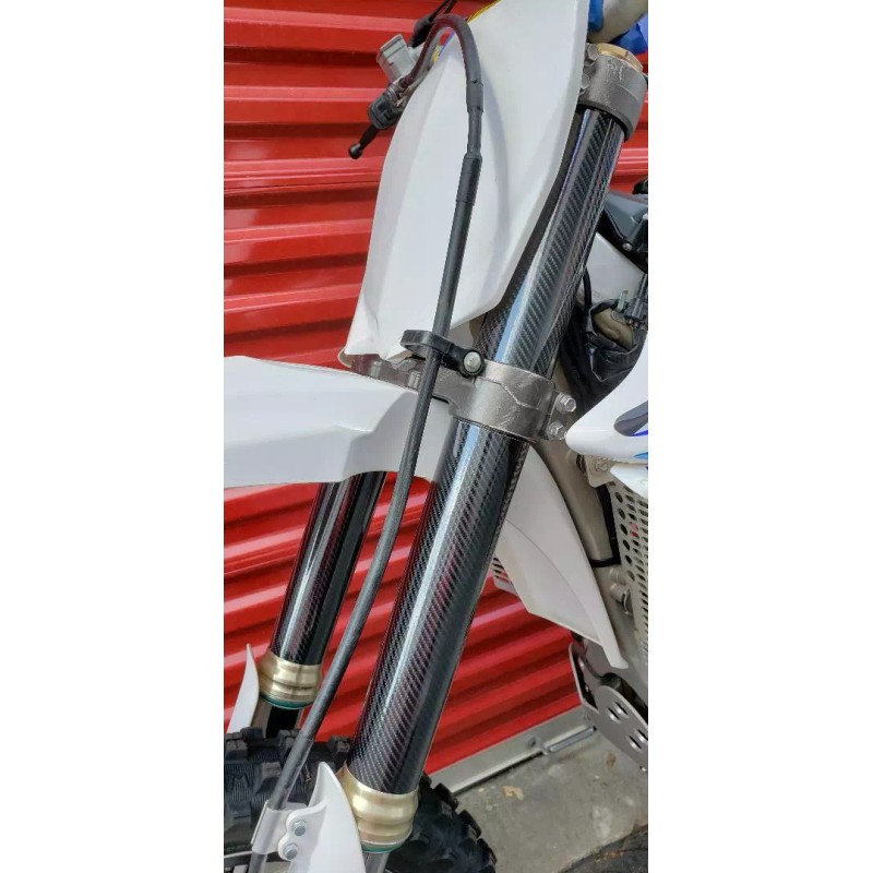 Fork Skins by MOTO JUNKEEZ Guards Covers Glossy Carbon Fiber Vinyl