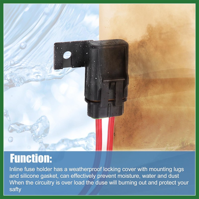 - About: Protective: Inline fuse holder has a locking cover with mounting lugs and a silicone gasket, which can effectively prevent moisture, water, and dust