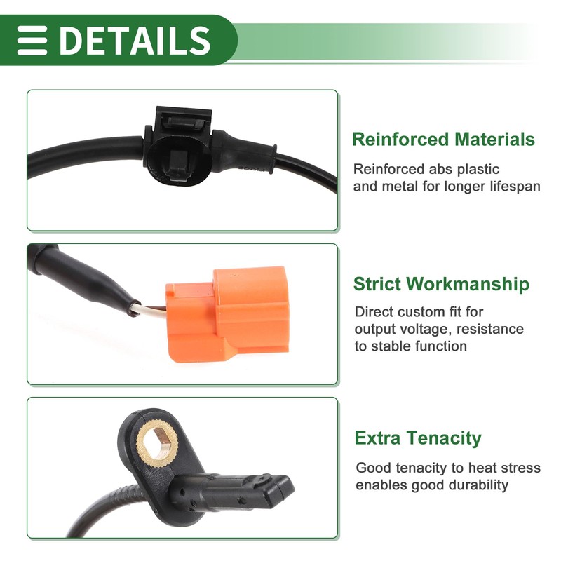 - Performance:Our reinforced wheel speed sensor will keep your car from skidding or sliding when you brake suddenly. You will get accurate and rapid signal measurement of wheel speeds to optimal braking performance.