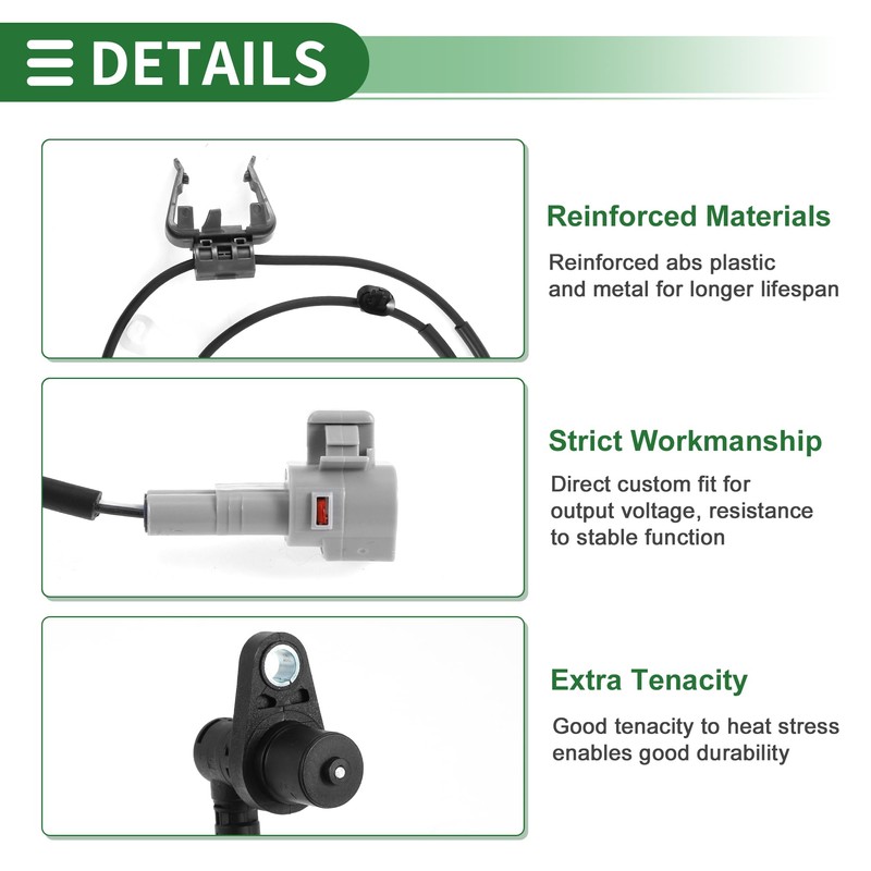 - Performance: Our reinforced wheel speed sensor will keep your car from skidding or sliding when you brake suddenly. You will get accurate and rapid signal measurement of wheel speeds to optimal braking performance.