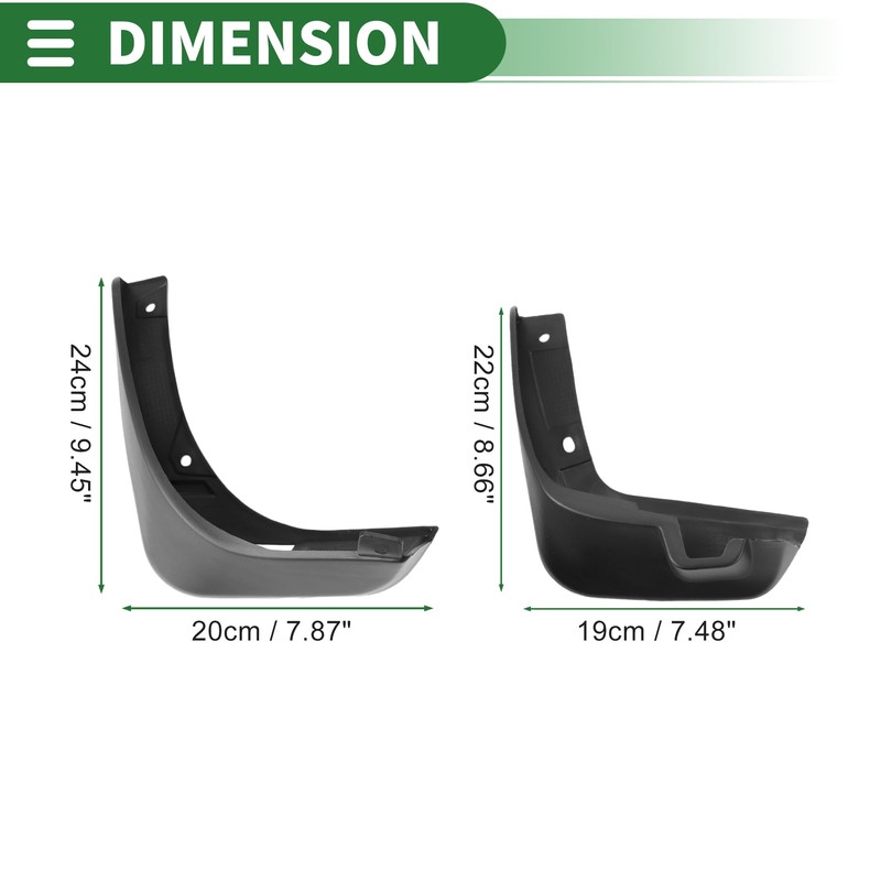- Performance:Every mudguard is a good fit for your car. A remarkable fit is ensured by the design's ability to hug the contours of your vehicle like no other.