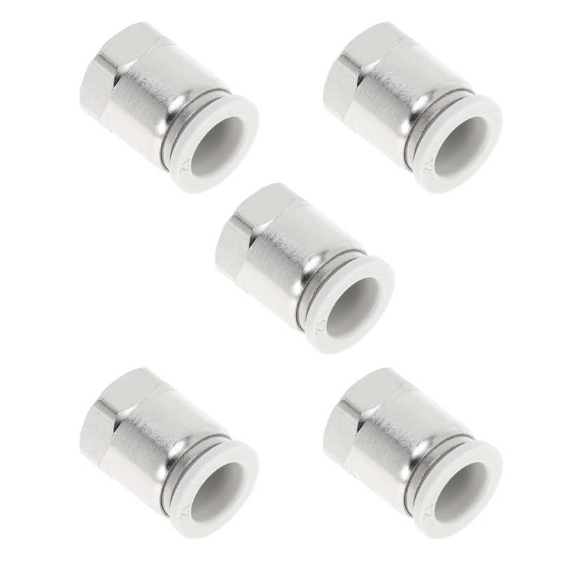 Motoforti Push to Connect Air Fittings 1/2" Female Thread Air Line Quick Connector Plastic Metal 1/8"BSPT 5 Pcs White Silver Tone