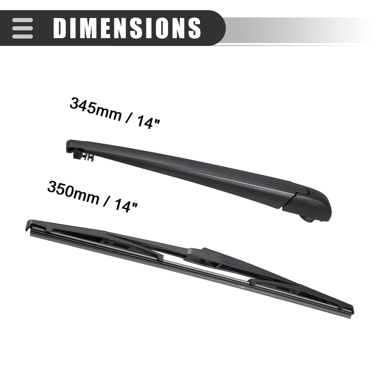 - What You Get: 1 pcs Rear Wiper Blade, 1 pcs Wiper Arm