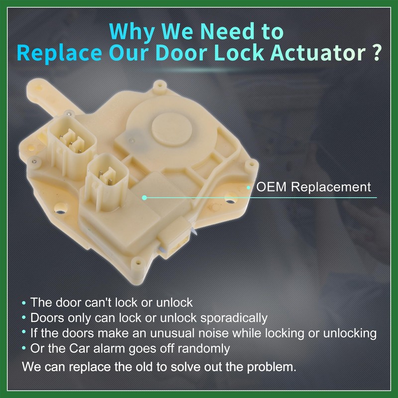 - Information: Features: If the door can't lock or unlock or only can lock or unlock sporadically or has noise or car alarm goes off randomly. We can replace the old one to solve the problem. Pressing the lock or unlock button, the door lock actuator is activated and moves the door lock mechanism.