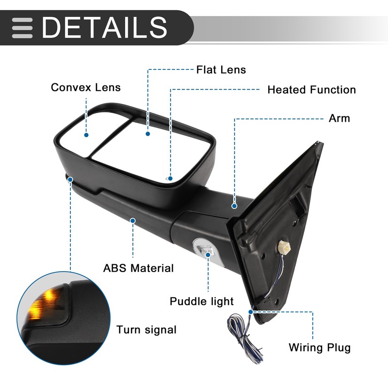 - What You Get: 1 Pair of Left Side & Right Side Towing Mirrors