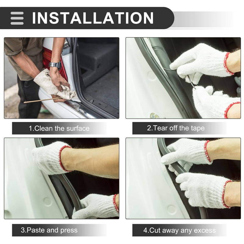 - How to Install: The Weatherstrip with adhesive backing can be cut as you need. Just clean the surface of the car body to make sure there is no dust and moisture, then press it on the gap to be filled and press it properly to ensure a firm bond.