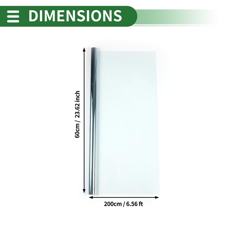 - Feature:Color: Light Blue, Size: 200x60cm / 6.56 ft x 23.62 inch(L*W), VLT: 78%, IRR: 15%, UVR: 40%, Thickness: 2mil.
