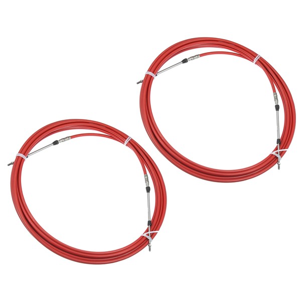 Motoforti Universal Marine Boat Throttle Shift Control Cable, 9M/30FT, Stainless Steel Rubber, Red, 2 Pc