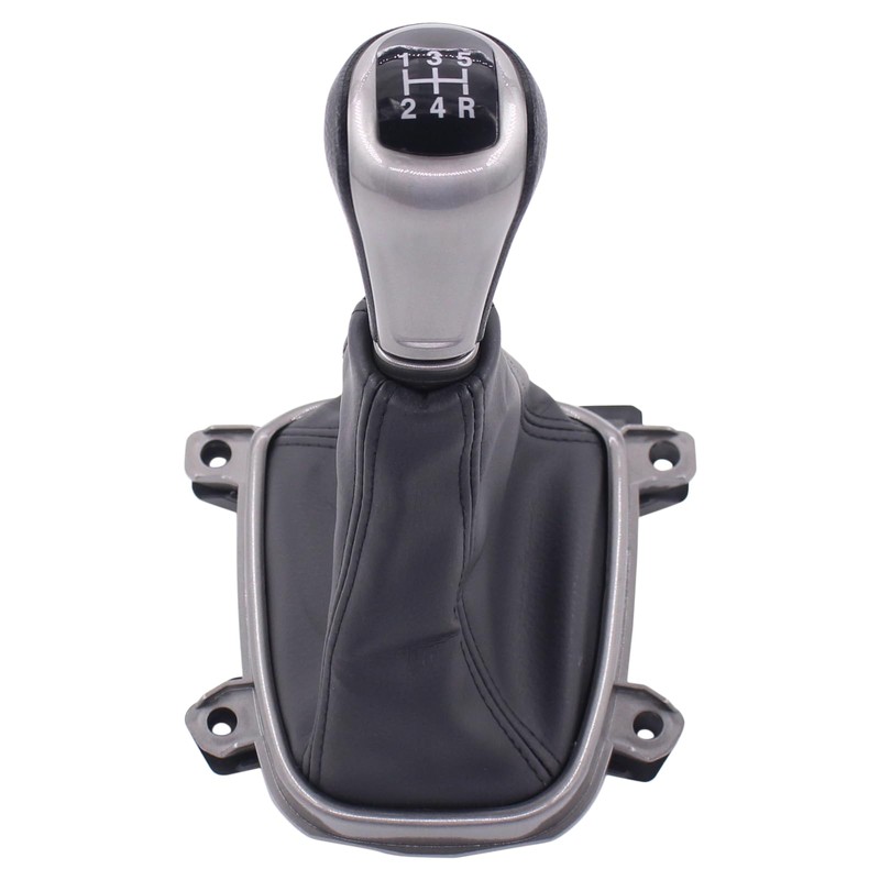 MOTOKU Black 5 Speed Manual Gear Shift Knob Boot Cover with Sliver Knob and B...