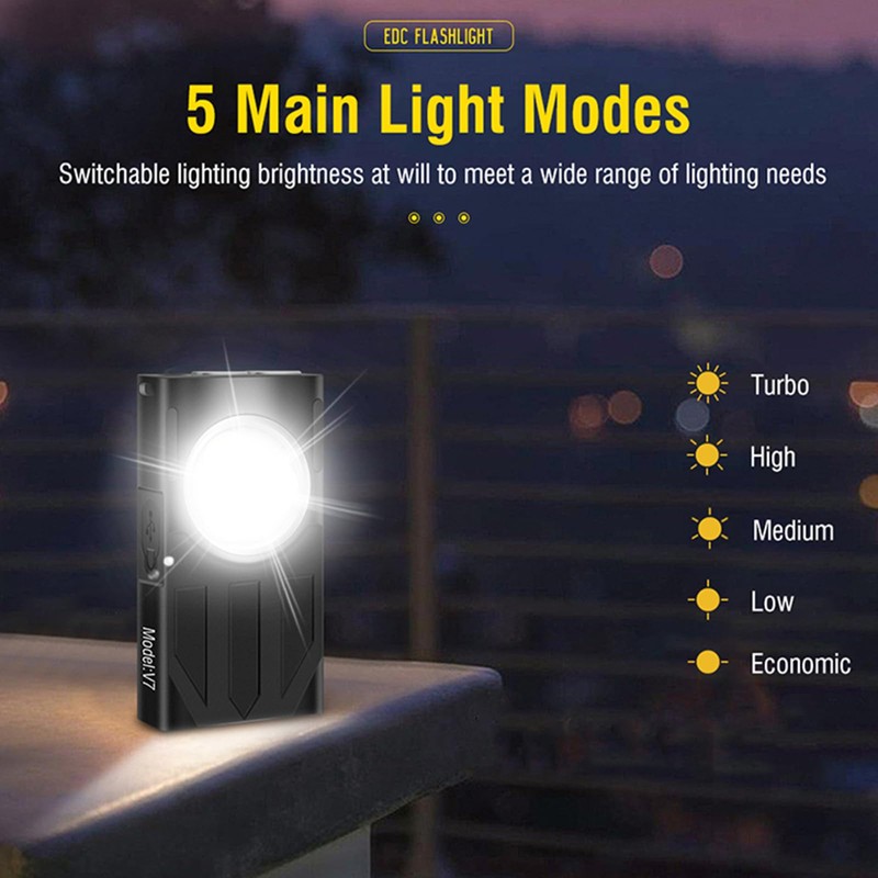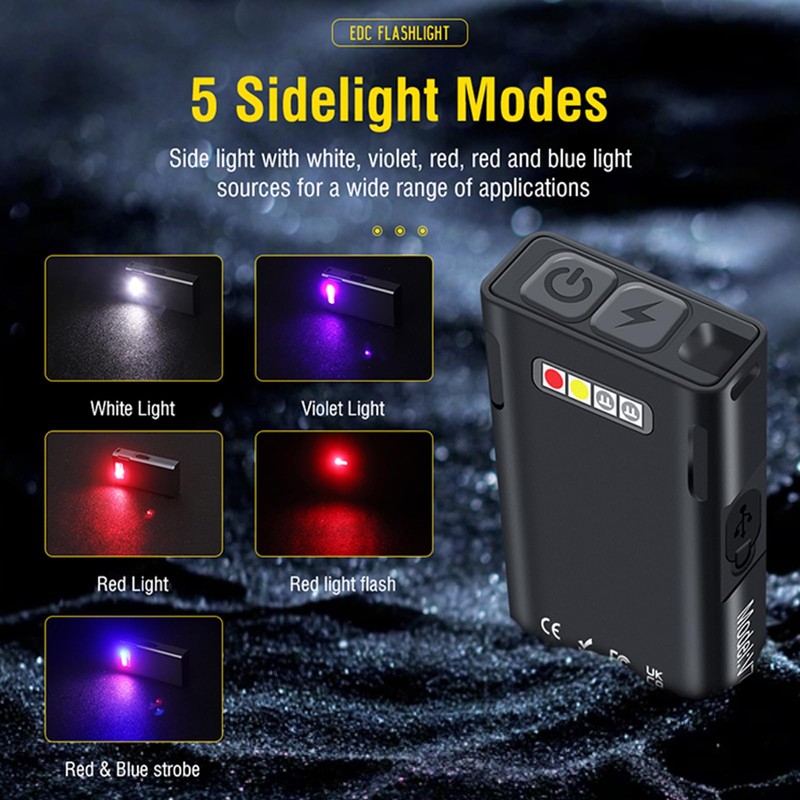 motomoyo V7 Mini Clip Torch 1100LM 4 Side Lights (Red/Blue/White/UV) with UV Note Test, SOS, Magnetic Base & USB-C, IP65 Waterproof for Camping/Emergency, Compact EDC