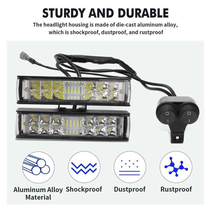 - 【Sturdy And Durable】The headlight housing is made of die-cast aluminum alloy, shockproof, dustproof, and rustproof.No worries in harsh environments and bumpy journeys.